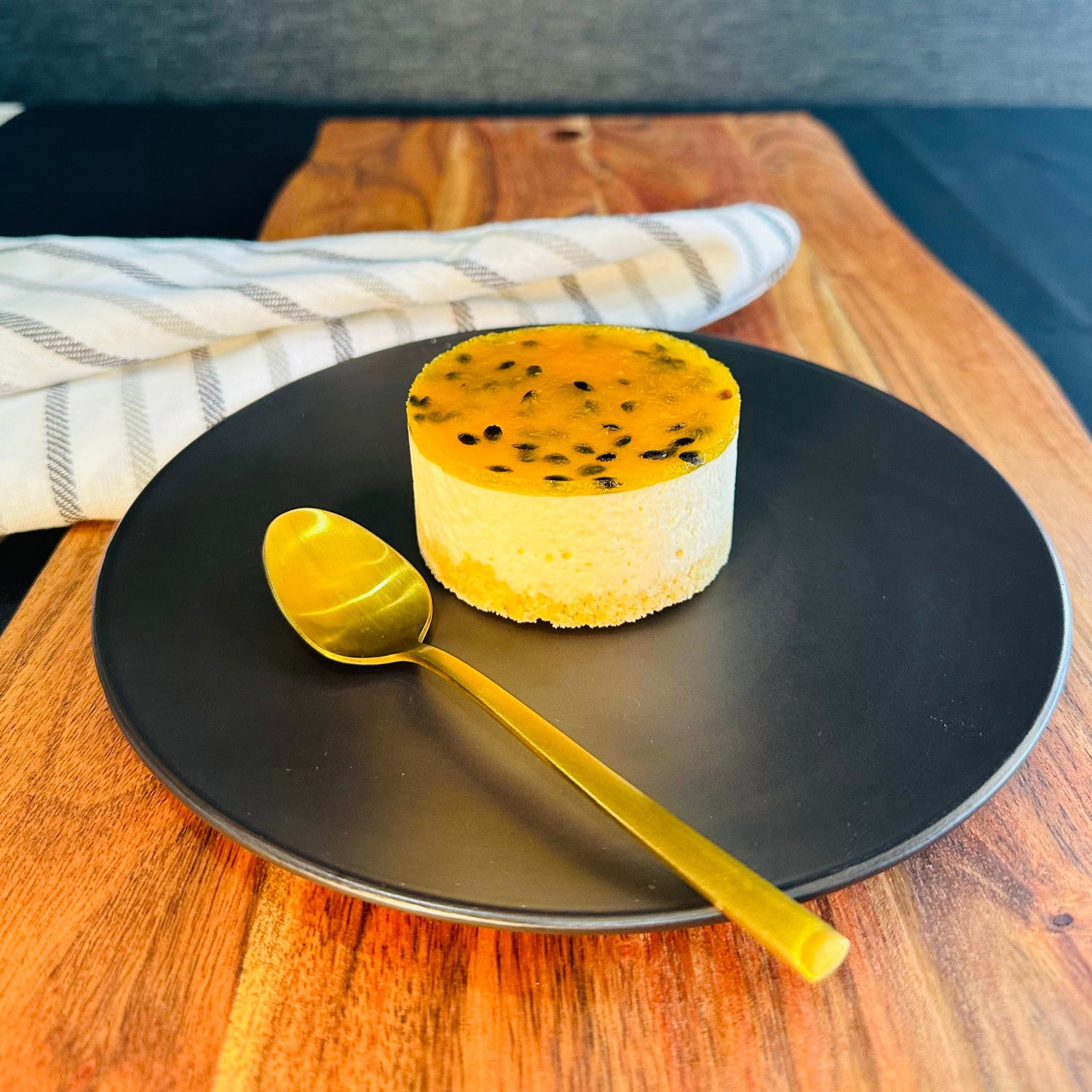 Individual dessert item with a cheesecake component