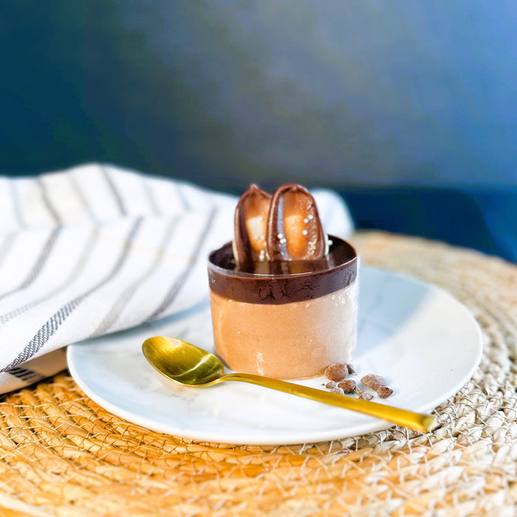 Layers of sponge and mousse finished with a velvet chocolate spray or wrapped in acetate.